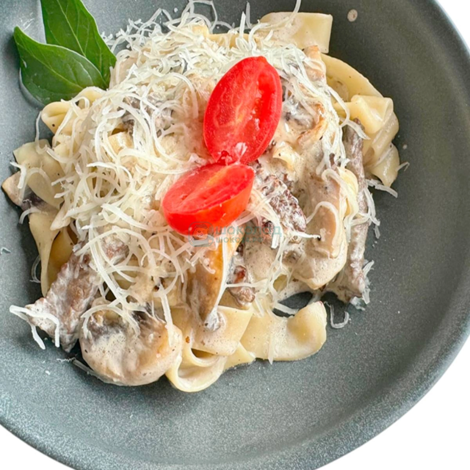 Сочная итальянские фетучини с мраморной говядиной и шампиньонами в сливочно - перечном соусе.