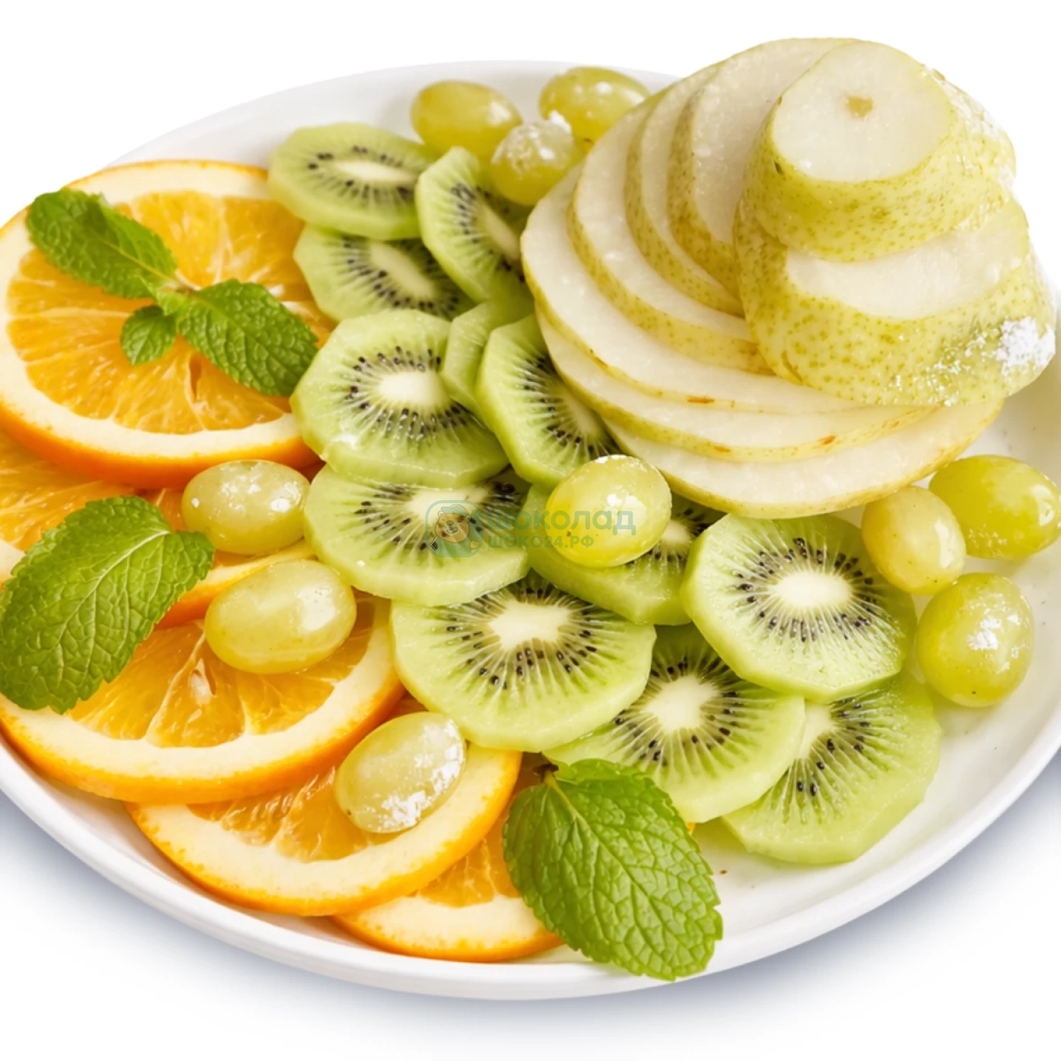 Фирменный салат с морепродуктами в состав которого входит: тигровые кревет...