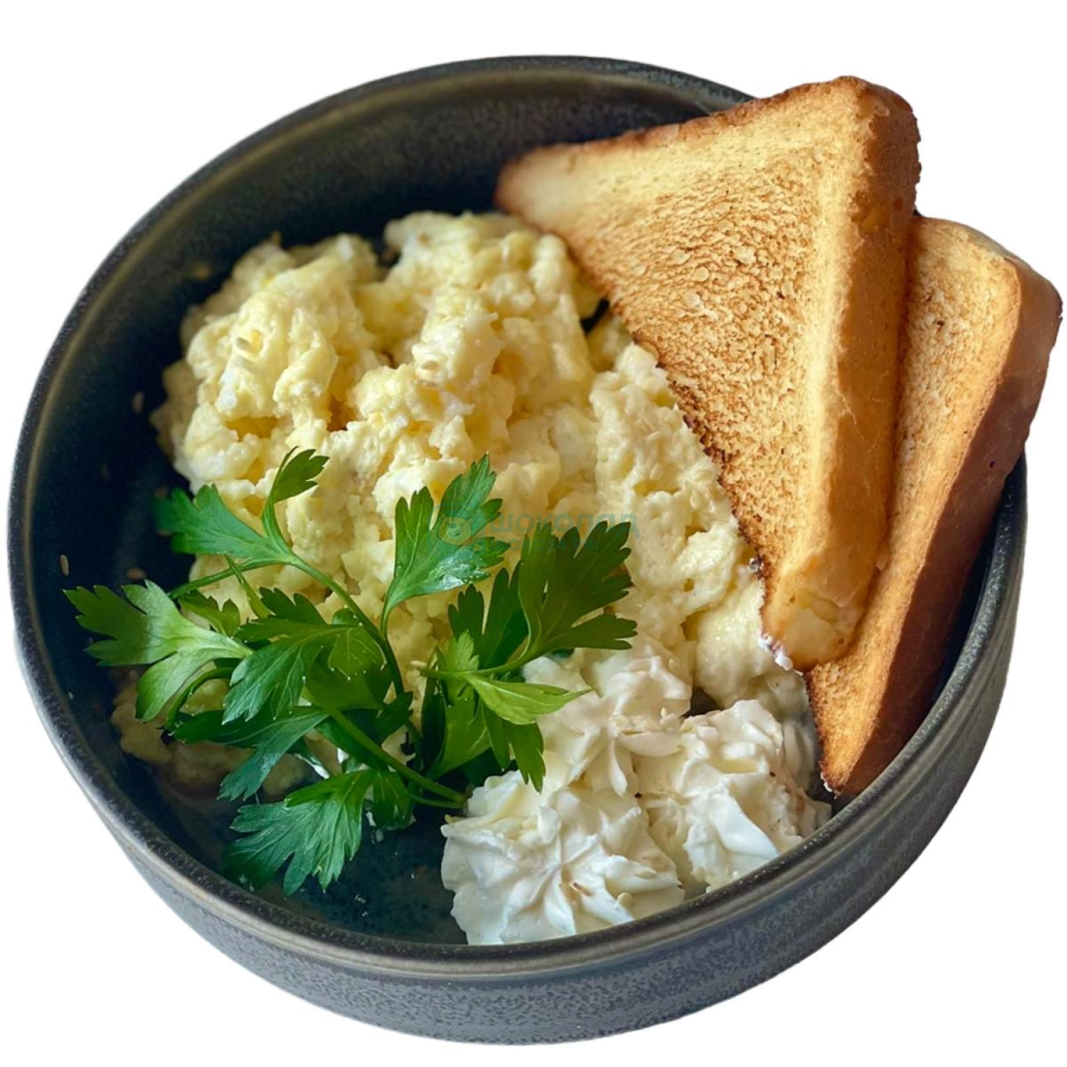 Нежнейший взбитый омлет, с муссом из Феты, и хрустящими тостами.