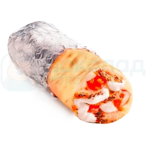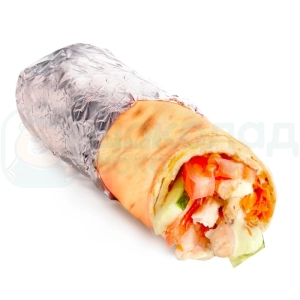Сочный, горячий ролл из тортильи с копчёной грудкой, свежими томатами , огурцами , морковкой по-коре...