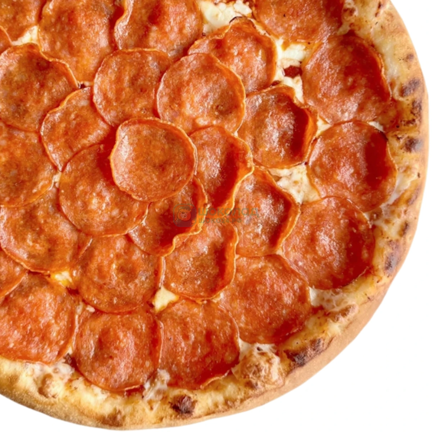 Двойная порция колбасок Пепперони, двойная порция сыра Моцарелла, соус Пицца, соус Спайси