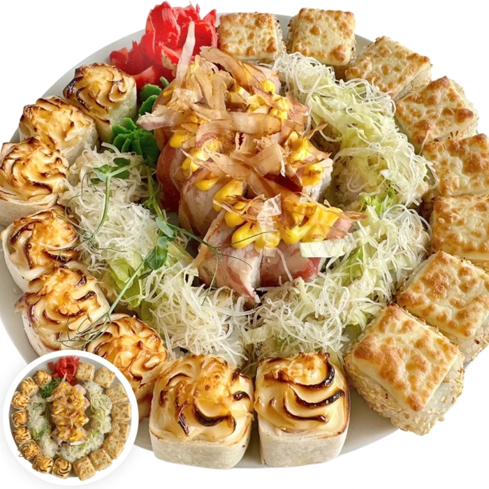 Это 100% счастье для женщин, но тут роллы в которые влюбятся даже мужчины. Состав: Тут вкуснейший запеченный ролл с курочкой в тортилье, а так же всеми любимый Цезарь, Карнавал в беконе и запеченный ролл курочка под Моцареллой.
