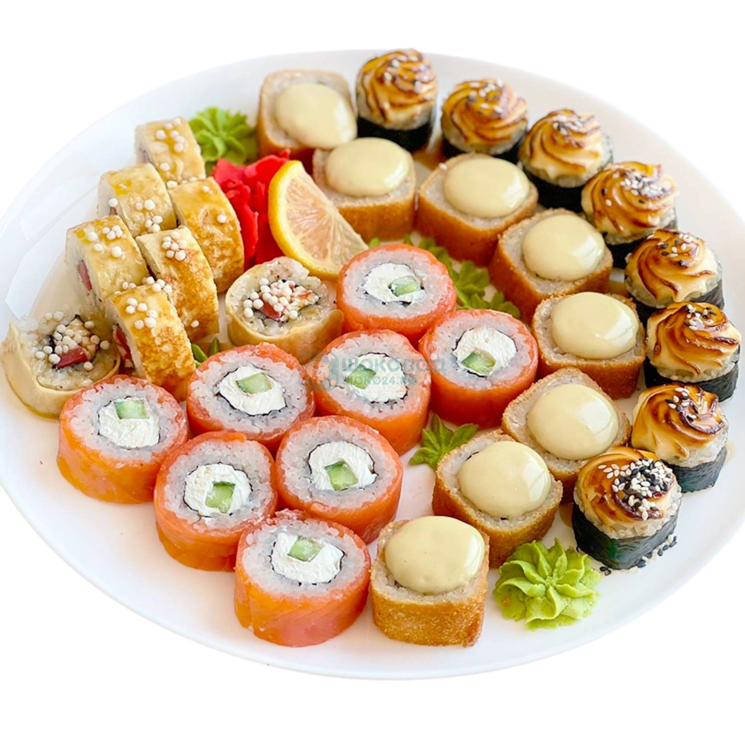 Копченый лосось копченый, сыр Филадельфия, огурец или авокадо